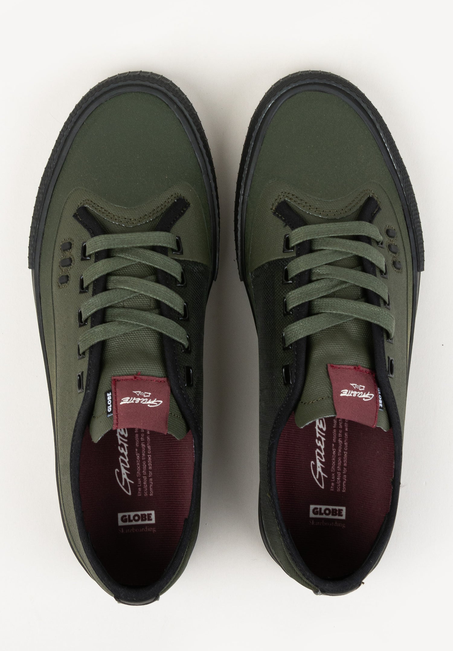 Mit dem globe Gillette bekommst du einen leichten Skateschuh mit besten Tech-Features. Austyn Gillette's Pro Model bringt ein top Boardfeel, luftdurchlässiges Mesh, auf der Fußinnenseite, und einige Features für eine lange Haltbarkeit aufs Brett.