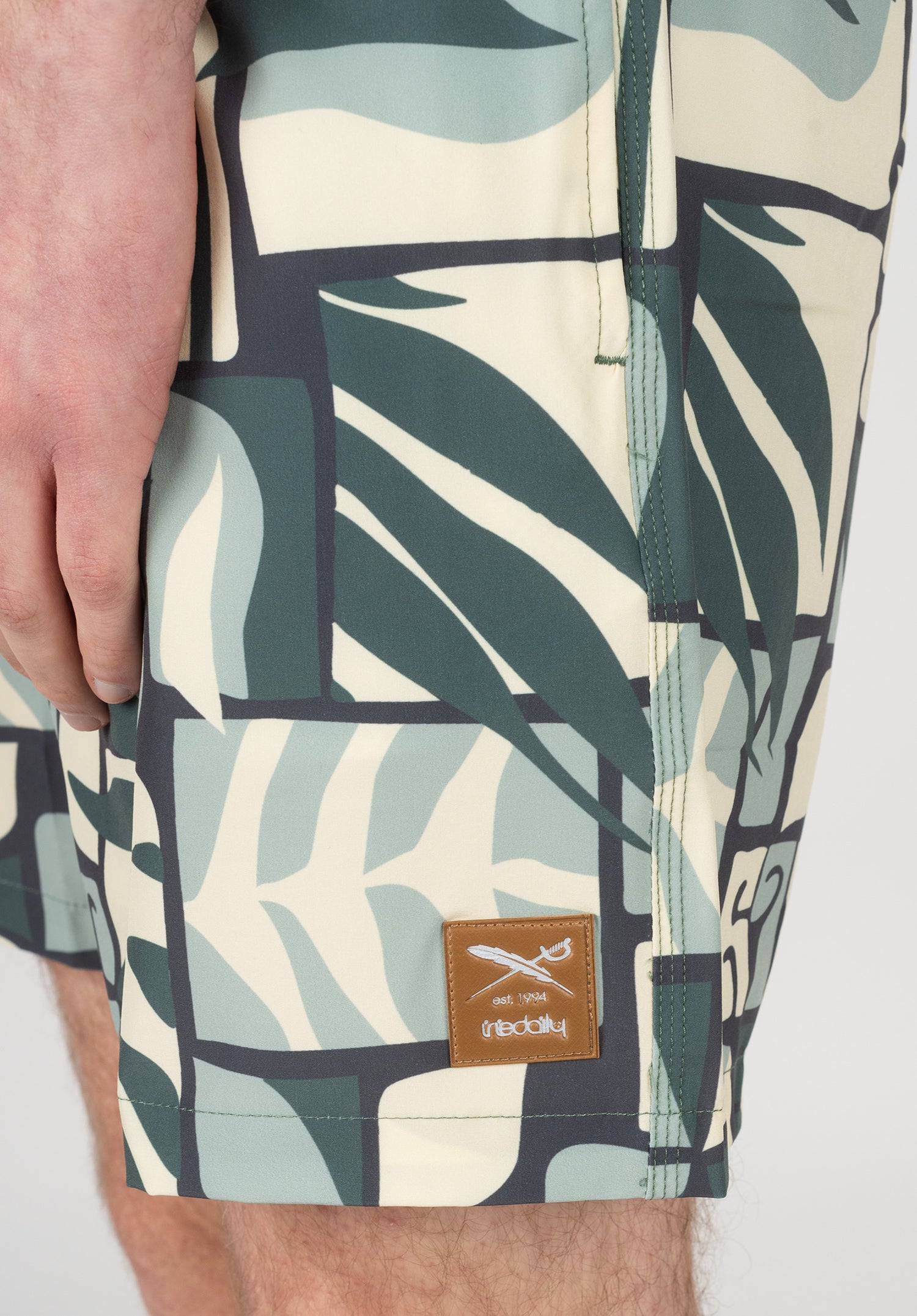 - iriedaily-Patch auf dem Hosenbein
