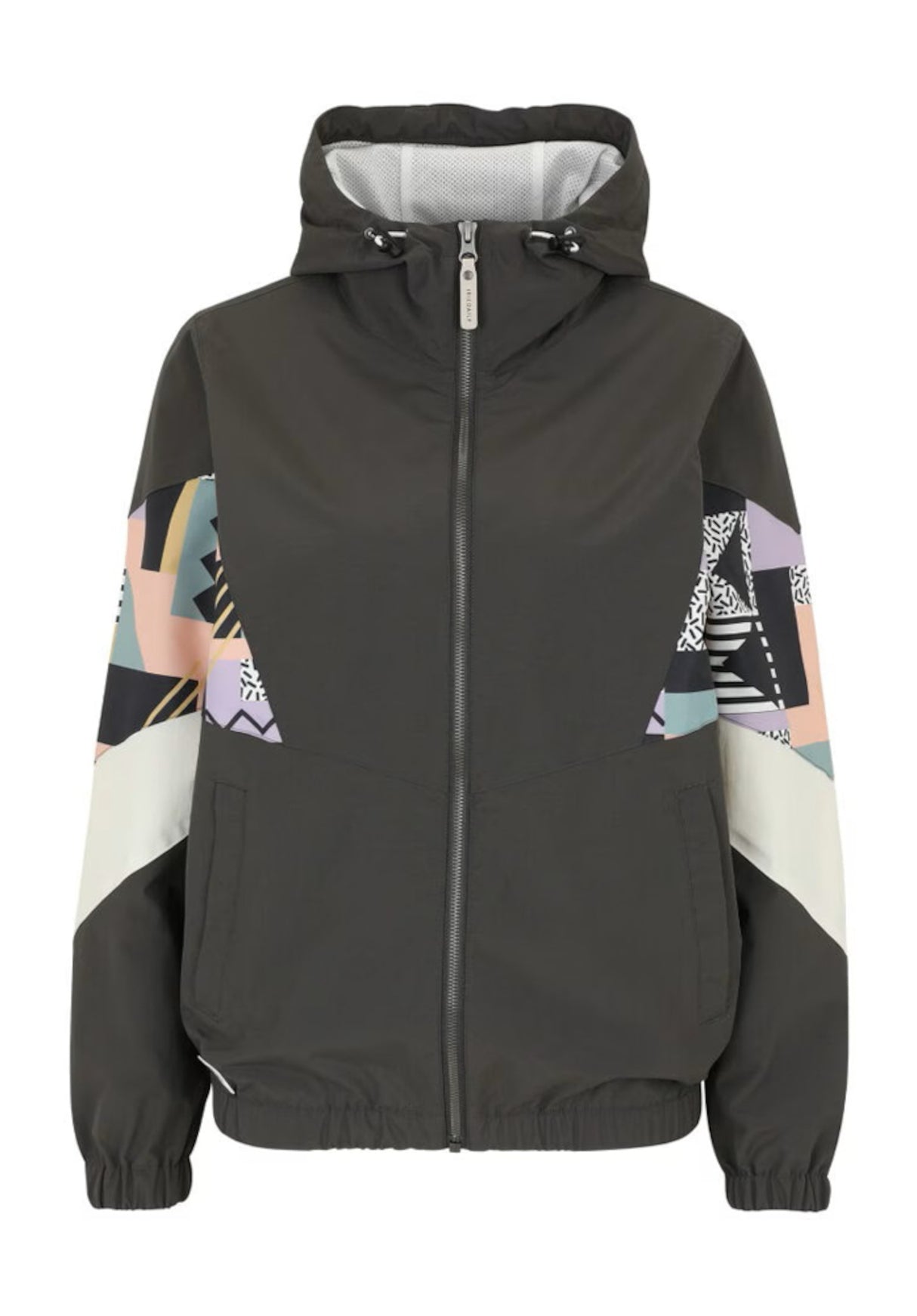 • durchgängiger, teilunterlegter Front-Zip mit hohem Kragen