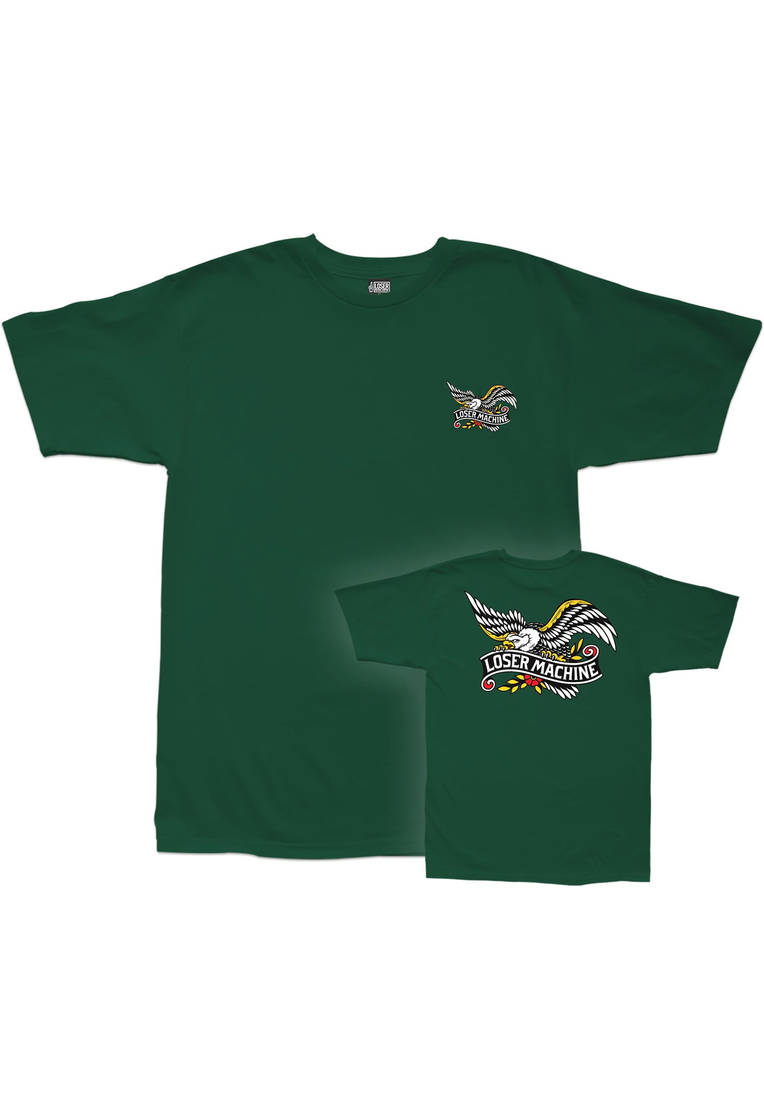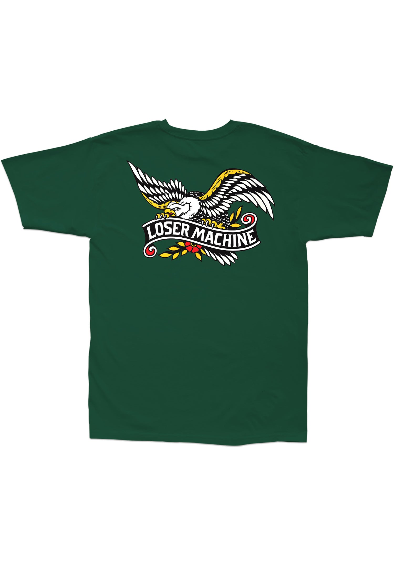 Loser-Machine bietet dir mit dem regular geschnittenen Glory Bound T-Shirt ein Artwork, das sich an klassischen Tattoo-Styles orientiert. Als Print groß auf dem Rücken und klein auf der Brust prägt es den Look ziemlich mächtig. Als Branding ist stimmig ein Schriftband in das Design eingebunden.