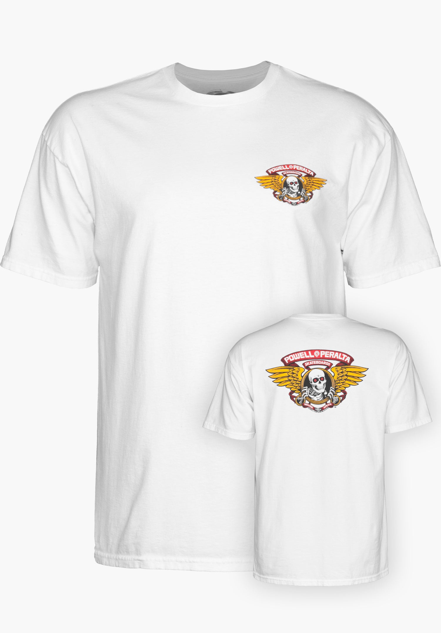 Das Winged Ripper T-Shirt von Powell Peralta ist ein klassisches Skateshirt mit kleinem Brust- und großem Rückenprint des Winged Rippers, entworfen 1987 von Skate Artist VCJ.