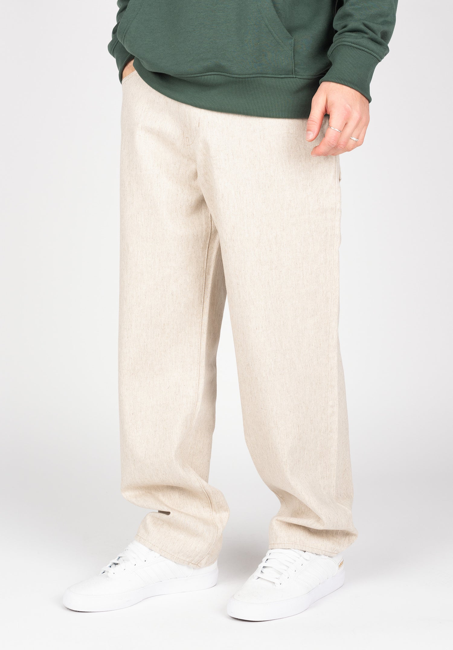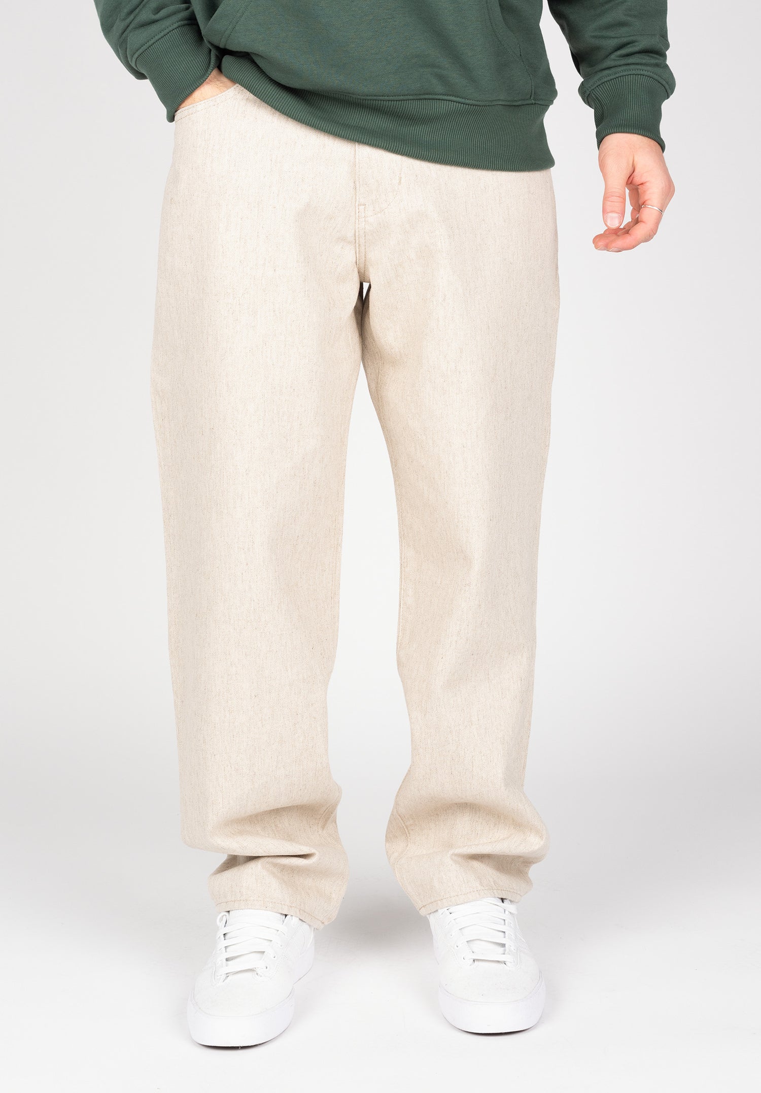 Loose Fit Hosen zeichnen sich durch ihren lässigen Schnitt aus. Von der Hüfte bis zu den Beinabschlüssen weisen sie durchgehend eine bequeme, lockere Passform auf. Der Schritt ist oft tief geschnitten.