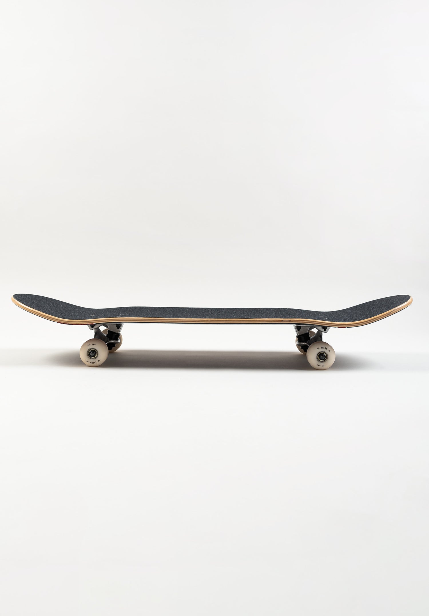 Das TITUS Classic Logo Komplettboard basiert auf einem soliden Ahornholz-Deck mit klassischem Shape und ordentlich Pop. Die montierten 101A Rollen sind optimal für Tricks. Mit ihrem Durchmesser von 54mm geben sie sowohl beim Street Skaten als auch in der Rampe eine gute Figur ab.