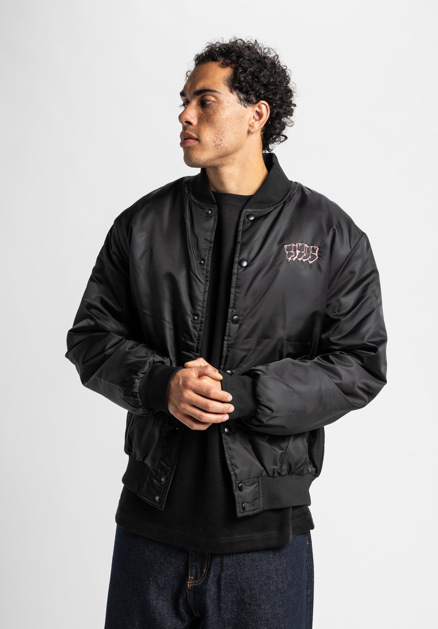 Die TITUS Jack Bomberjacke - schwarz, clean und ready für die Street. Der rosefarbende Stitch setzt einen urbanen Kontrast zum tiefschwarzen Stoff und verleiht der Jacke einen unverwechselbaren Vibe - roh, edgy und kreativ.